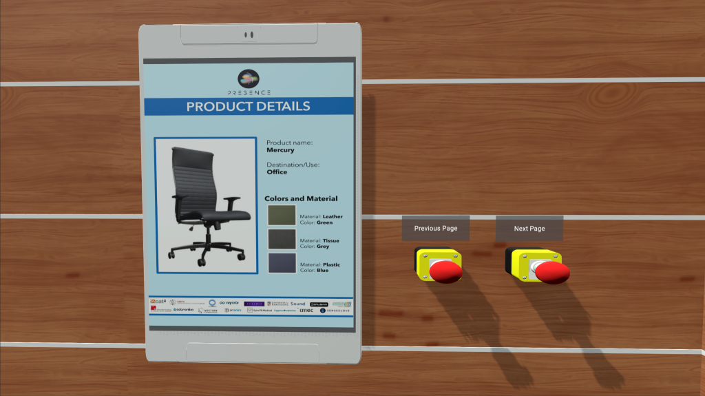 Within the PRESENCE project, Vection Technologies contributes a use case dedicated to immersive collaboration, demonstrating how Virtual Reality can transform the way teams design and make decisions. The company has developed a multi-user VR environment where a group of people can gather in the same virtual room to discuss and evaluate the design of a chair, analyzing its shape, proportions, and construction details.