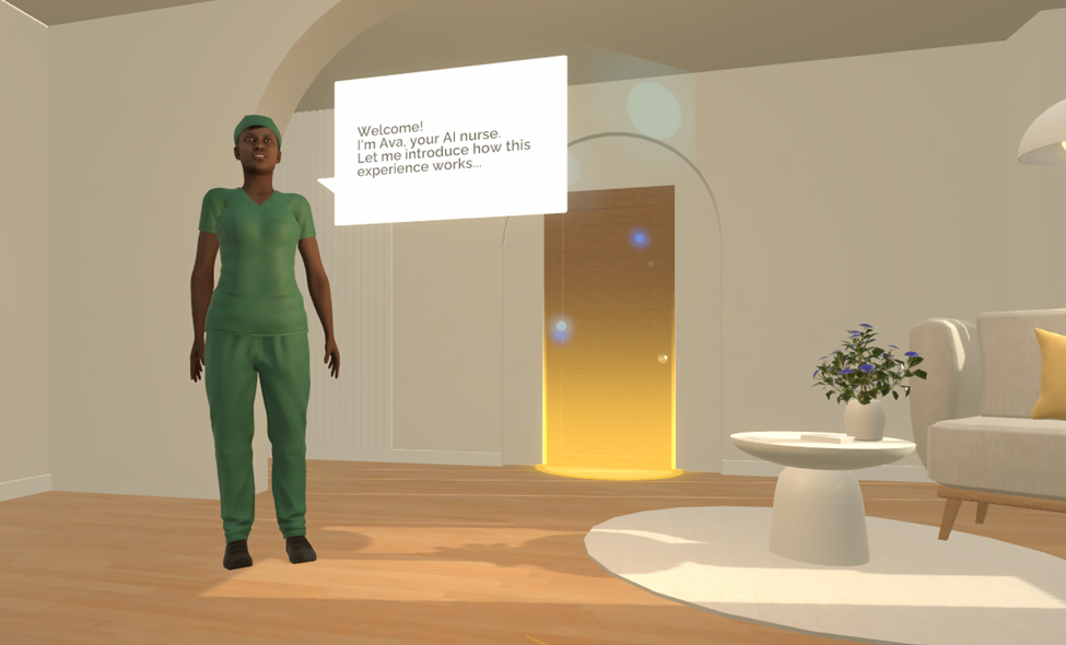 Enables a remote person to appear as a life-size, volumetric presence within the virtual environment. In a healthcare context, this can allow patients to interact with family members in a more natural and spatial way compared to video calls.
